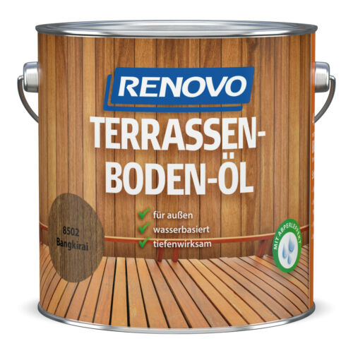 RENOVO Terrassenboden-Öl ist ein tiefenwirksames Pflegeöl mit Abperleffekt für Gartenholzterrassen und Gartenparkett aus Harthölzern im Außenbereich. Es bietet einen Schutz vor Vergrauen, ist offenporig, feuchtigkeitsregulierend, Wasser abweisend und lässt sich leicht verarbeiten. RENOVO Terrassenboden-Öl betont die Holzmaserung und den natürlichen Farbton und frischt alte, vergraute Holzoberflächen wieder auf.